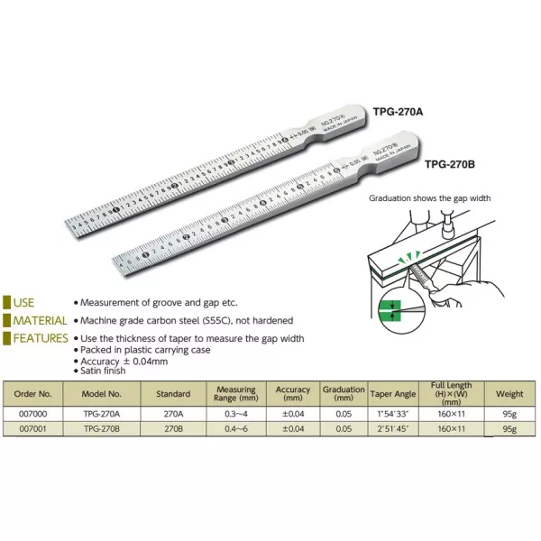 0.3-4mm Thước đo khe hở kiểu nêm Niigata TPG-270A