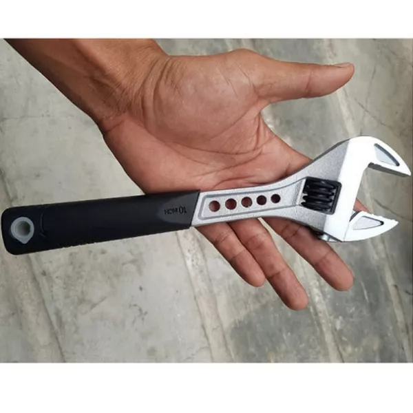 Phần đầu của mỏ lết còn được thiết kế một dãy thước đo , giúp cho người dùng dễ dàng điều chỉnh đến kích thước cần xiết một cách dễ dàng. Sản phẩm được phủ một lớp xi mờ vừa có tác dụng chống sự ăn mòn của oxy hóa, vừa tạo nên vẻ đẹp và cứng cáp cho sản phẩm. Phần đuôi mỏ lết được thiết kế thêm một lỗ tròn, giúp cho người dùng có thể treo sản phẩm lên cao khi không sử dụng.