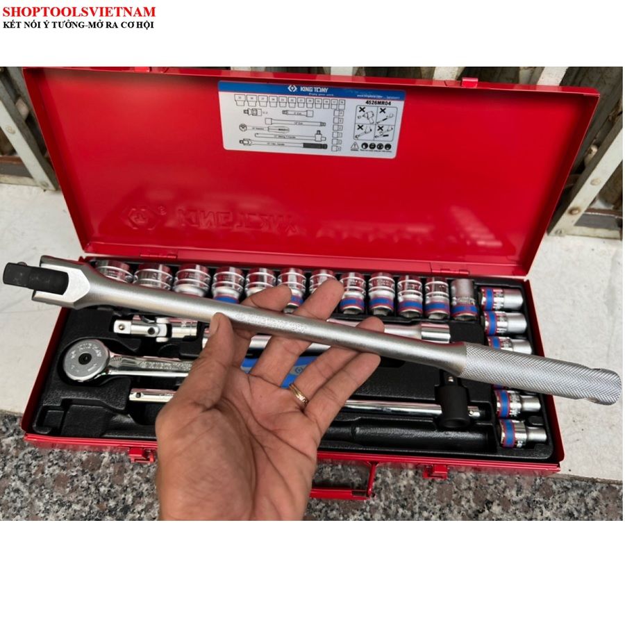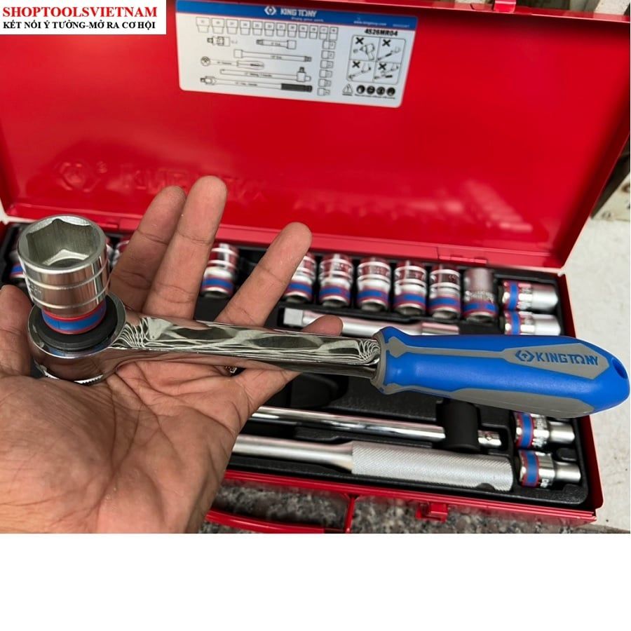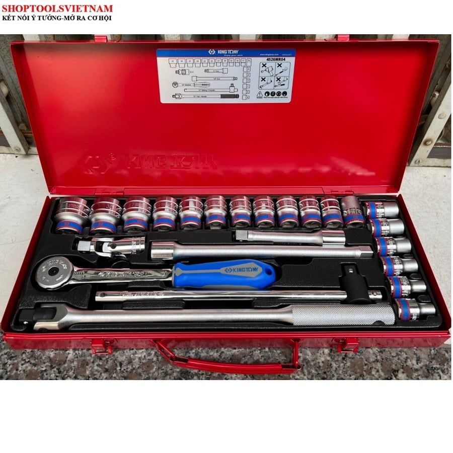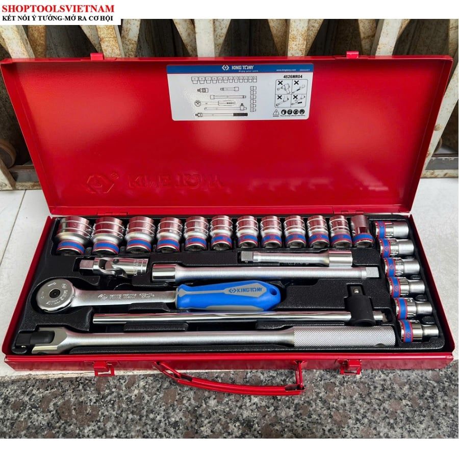 1/2″ bộ tuýp 24 chi tiết hệ mét 8-32mm Kingtony 4526MR04 (24 PC. 1/2" DR. 6 Point Socket Wrench Set)