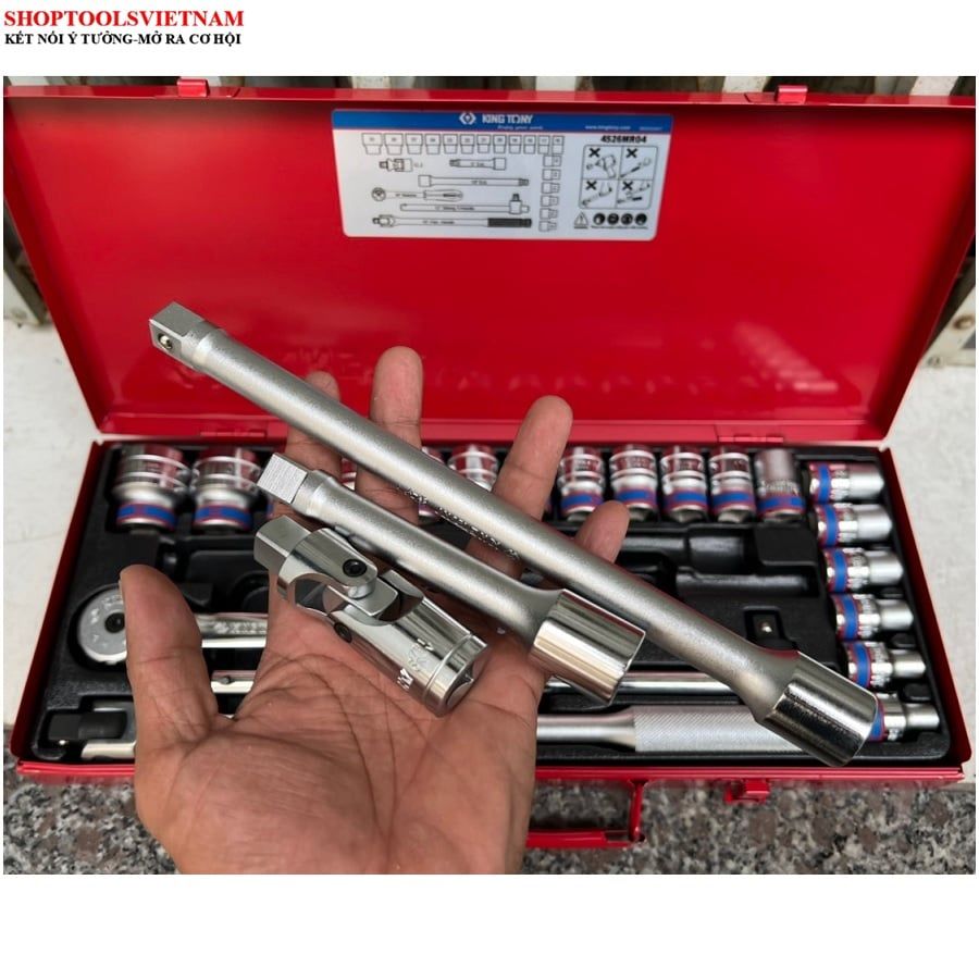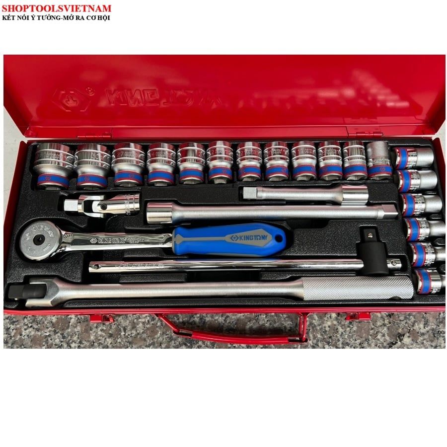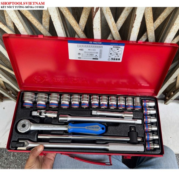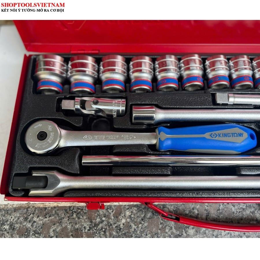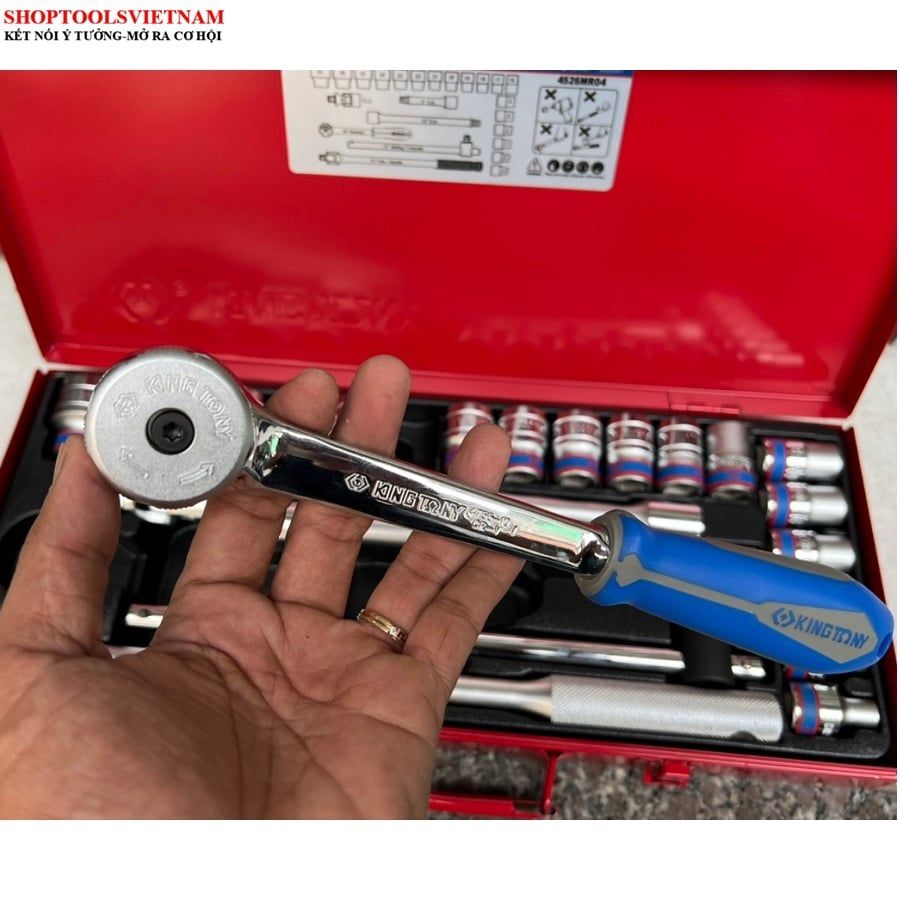 1/2″ bộ tuýp 24 chi tiết hệ mét 8-32mm Kingtony 4526MR04 (24 PC. 1/2" DR. 6 Point Socket Wrench Set)