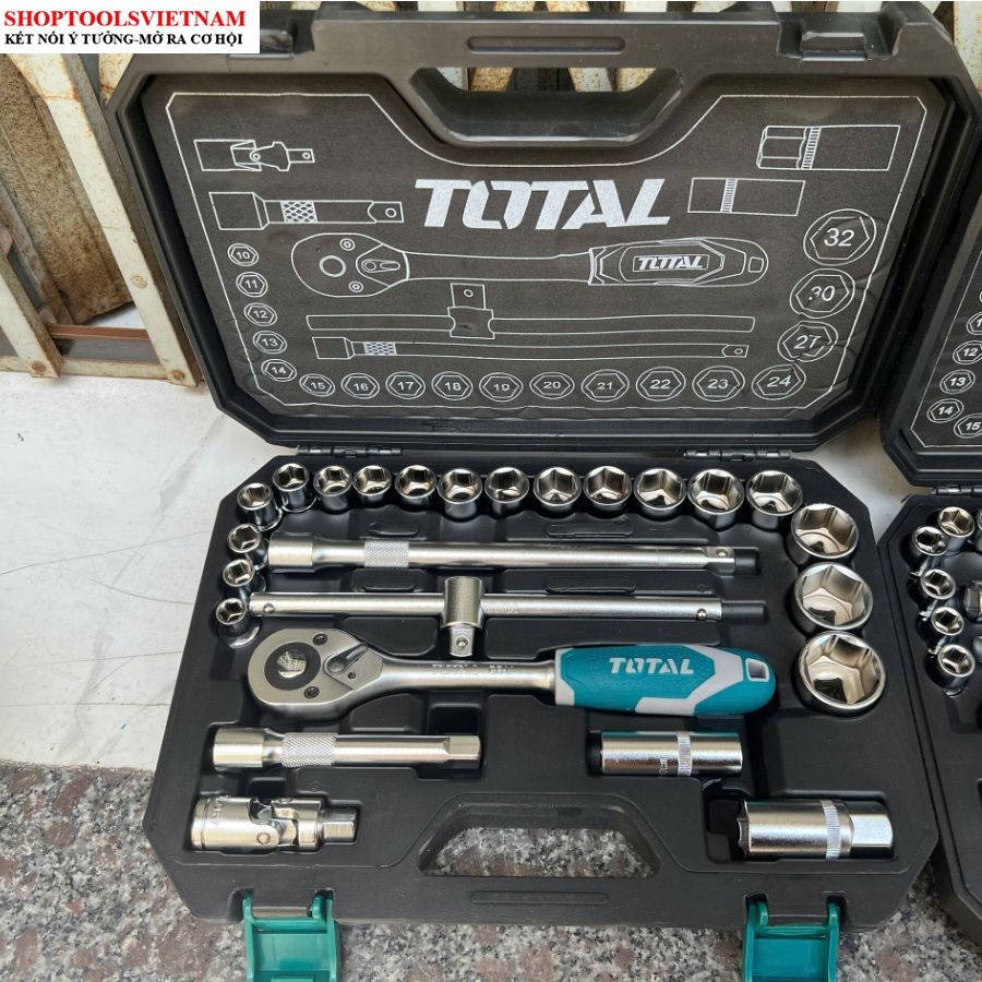 1/2" Bộ tuýp 25 chi tiết 10-32mm Total THT121251 (25 PC. 1/2" DR. 6 Point Socket Wrench Set)