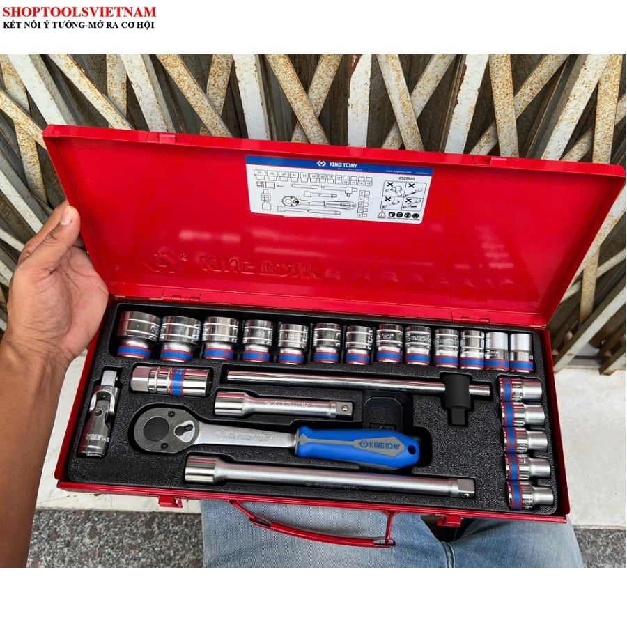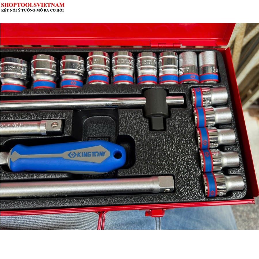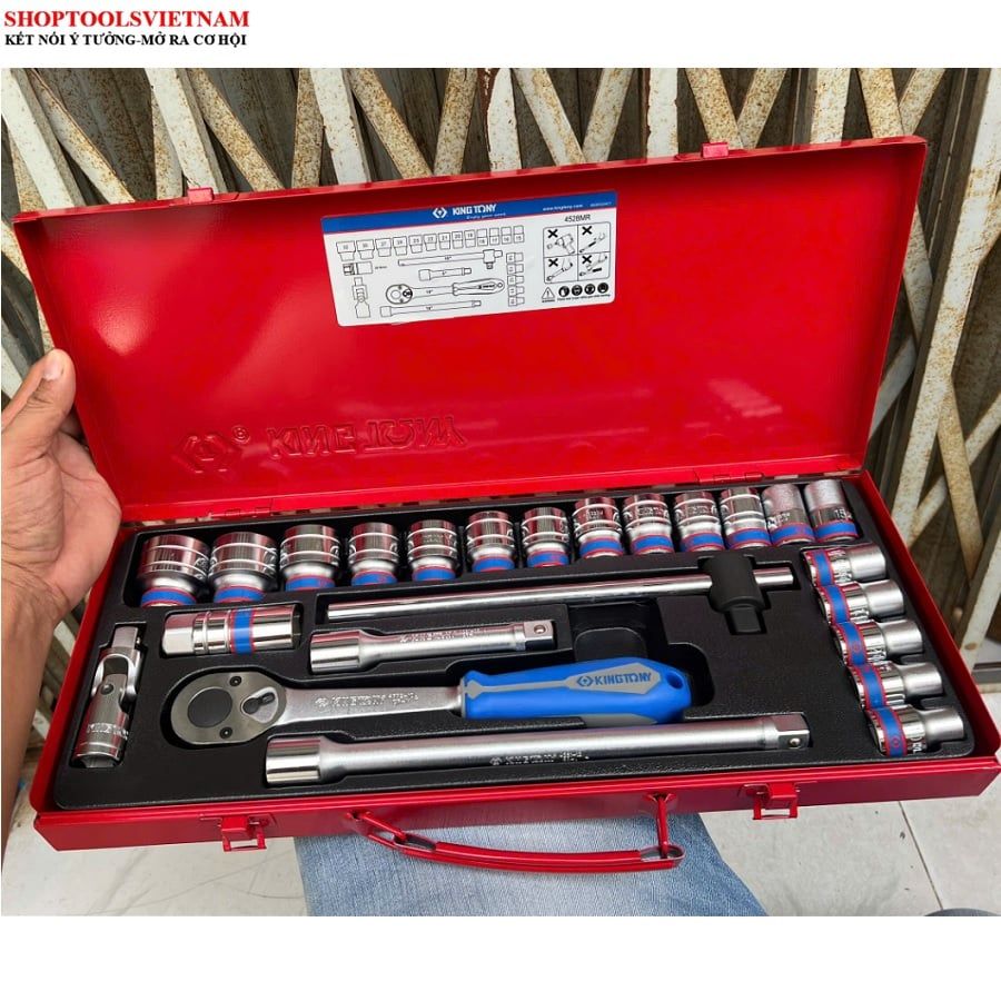 1/2" Bộ tuýp lục giác 24 chi tiết hệ mét 10-32mm Kingtony 4528MR ( 24 PC. 1/2" DR. 6 Point Socket Wrench Set)