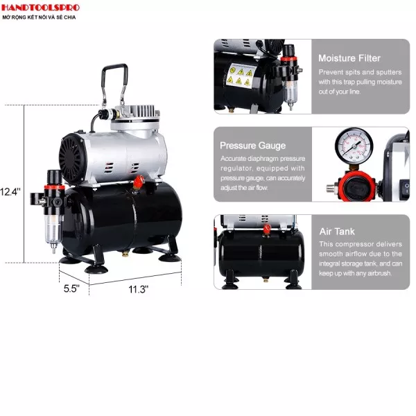 Được trang bị bộ lọc không khí & bộ điều chỉnh và áp kế.