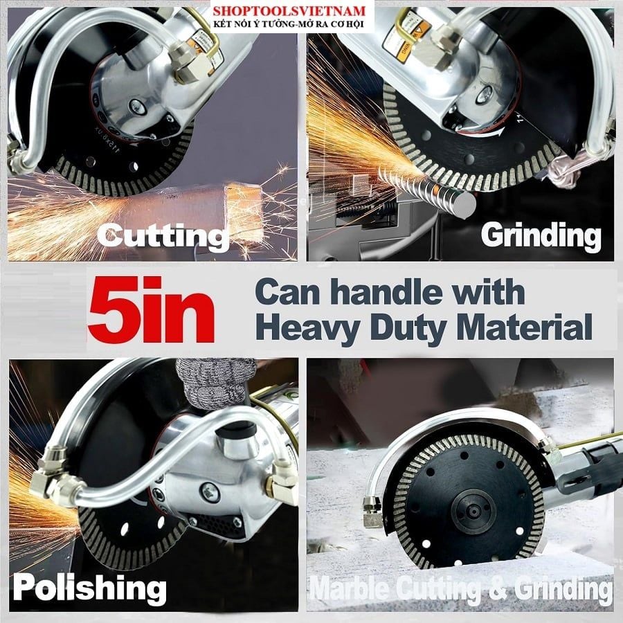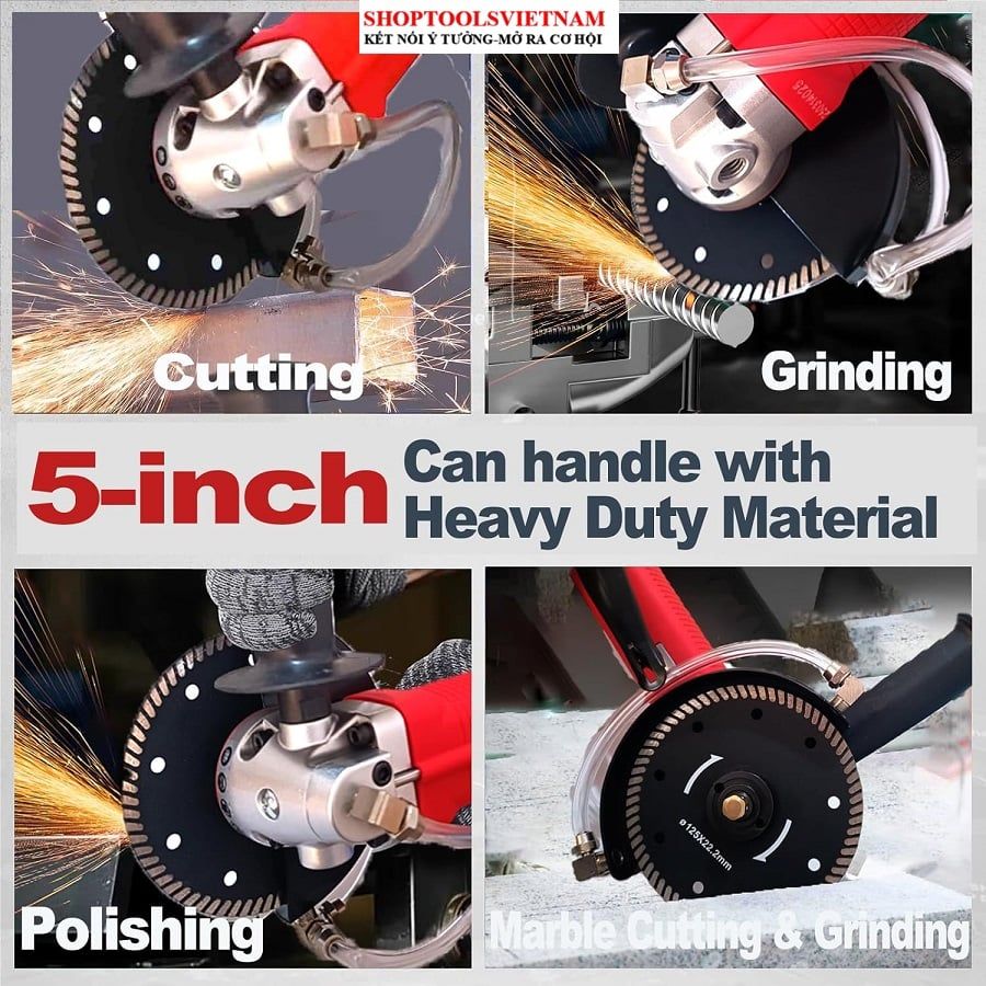 - Công cụ tốc độ cao này thực hiện công việc cắt bằng cách lấy một đĩa cắt 5 inch (đĩa cắt ướt).