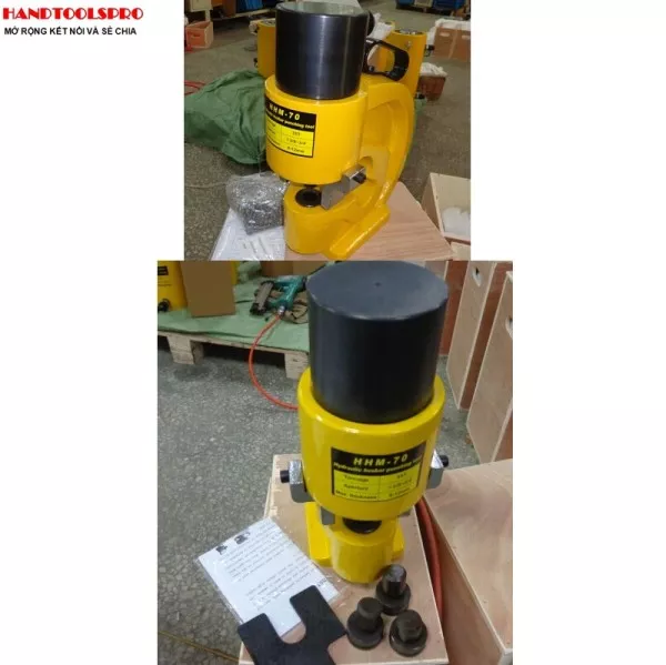 Có lực đột 35 tấn, họng đột sâu 110mm, đột được Nhôm đồng dày 12mm, còn sắt thép dày 8mm, phù hợp cho việc đột lỗ đột lỗ thanh cái và các thép tấm, dầm thép V U H T có độ dày vừa phải. Có 4 size mũi đột đi kèm Φ3/8" (10.5mm), Φ1/2" (13.5mm), Φ5/8" (17.5mm), Φ3/4" (20.5mm) ngoài ra có thể thay thế bằng các size khác để phù hợp với mục đích. Sử dụng đầu đột lỗ HHM-70 cần có bơm thủy lực như Bơm tay thủy lực hoặc máy bơm thủy lực loại một vòi dầu như bơm tay HHB-700, HHB-700A hoặc máy bơm HHB-630A, HHB-630C.