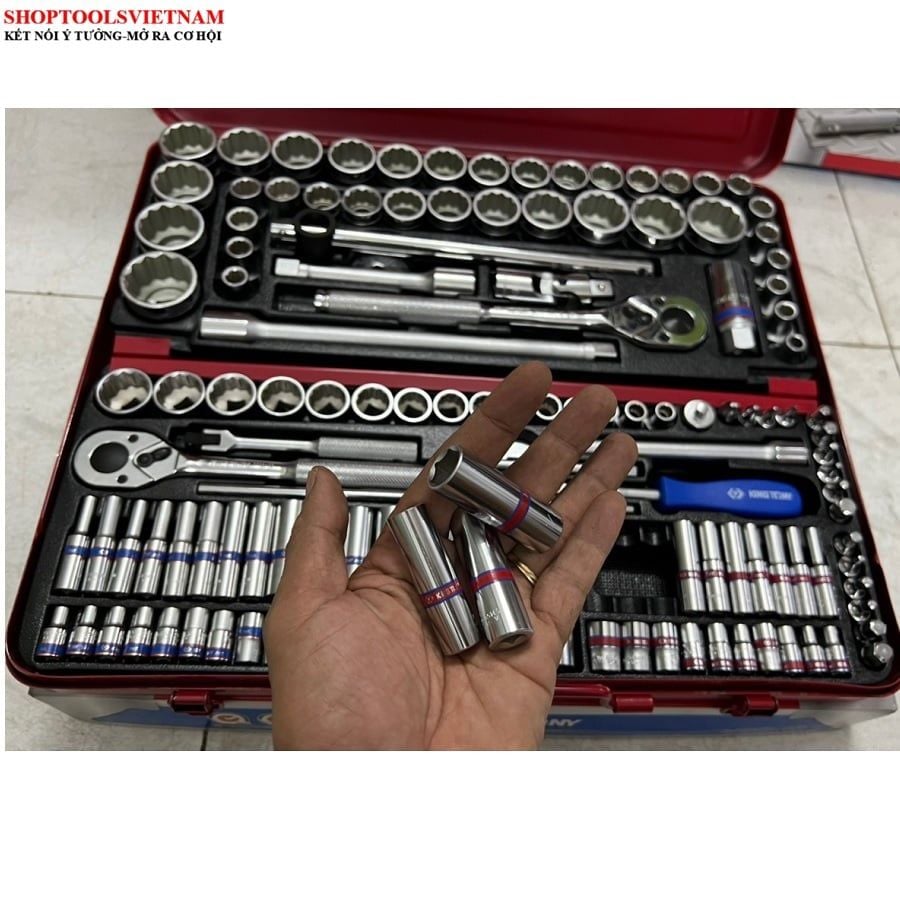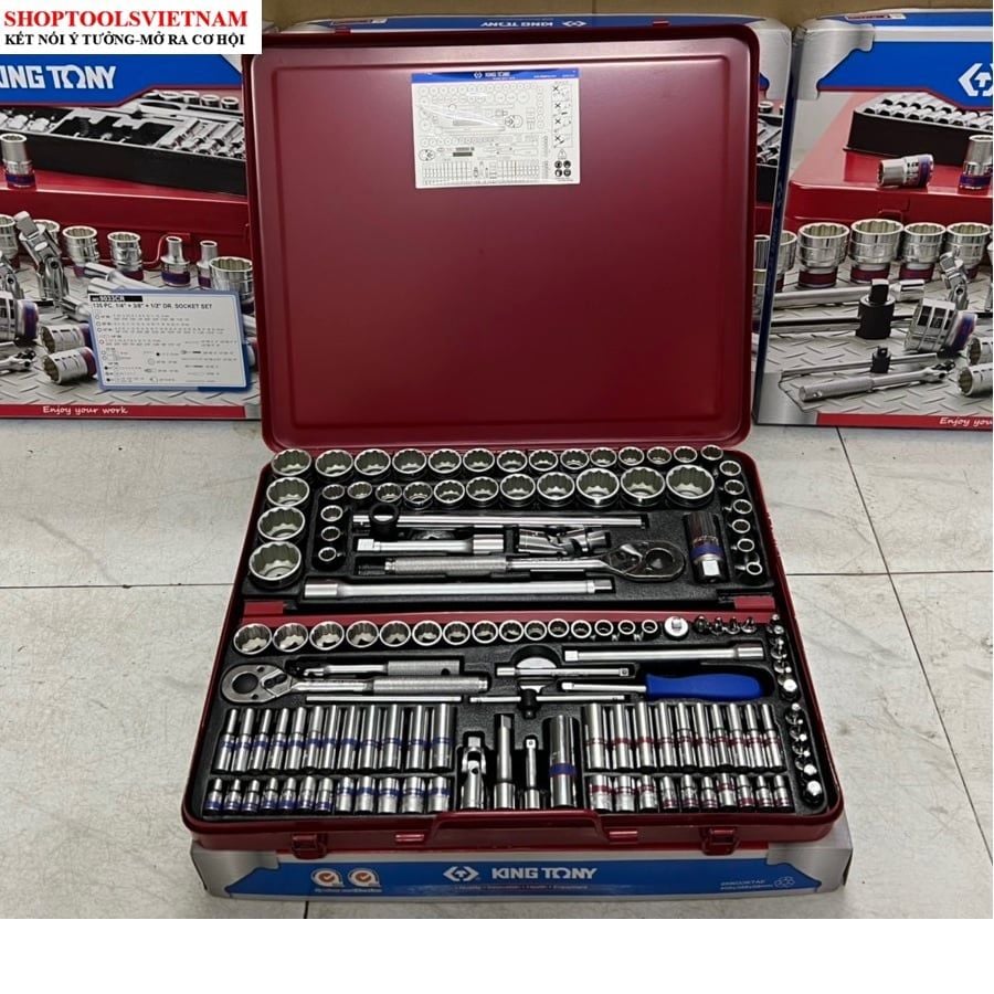 1/4" + 3/8” + 1/2" bộ tuýp 135 chi tiết Kingtony 9033CR (135 PC. 1/4"+3/8"+1/2" DR. Socket & Tool Set)