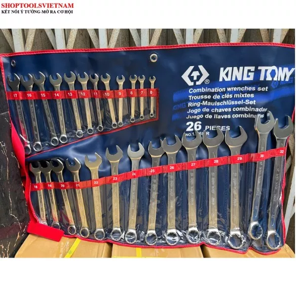 6-32mm Bộ cờ lê vòng miệng 26 cái hệ mét Kingtony 1226MR (26 PC. Combination Wrench Set)