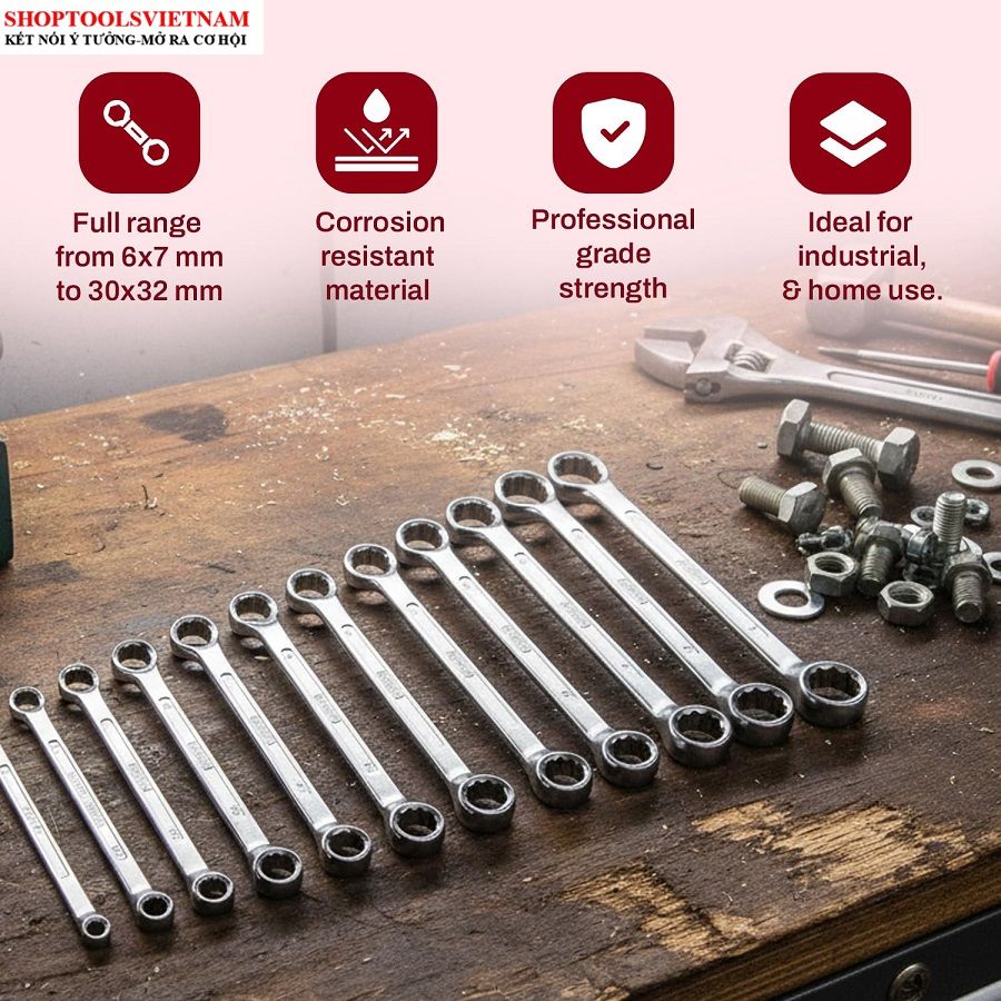 6-32mm bộ hai đầu vòng 12 cái hệ mét Kingtony 1712MR