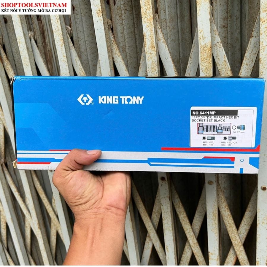 6411MP Kingtony/Bộ tuýp đen 3/4" gắn mũi lục giác 11 chi tiết H10-H32 (DR. Impact Bit Socket Set)