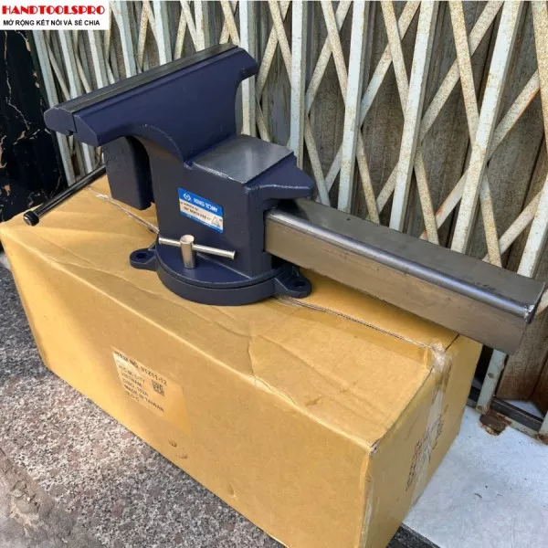 - Thân ê tô được làm bằng thép, có thể chỉnh độ rộng sản phẩm cần kẹp một cách dễ dàng.