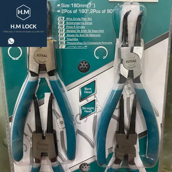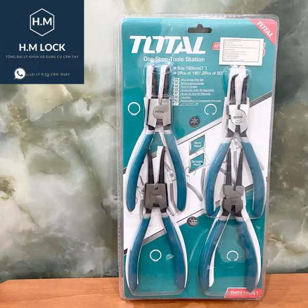 Bộ 4 kìm (kềm) mở phe TOTAL 7” (180mm) - hàng cao cấp - HM Lock Size: 7"/180mm - Chất liệu: thép carbon - Độ xoay: 2 Kìm (kiềm) 180°, 2 Kìm (kiềm) 90° - Size: 10"/254mm