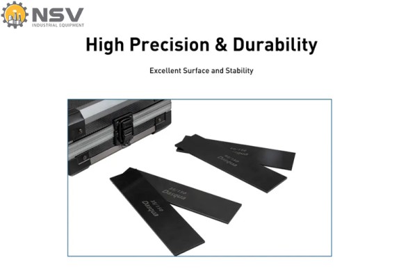 Dung sai chiều cao chỉ ±0.005mm và dung sai chiều rộng 0.01mm, đạt chuẩn dụng cụ đo công nghiệp chính xác.