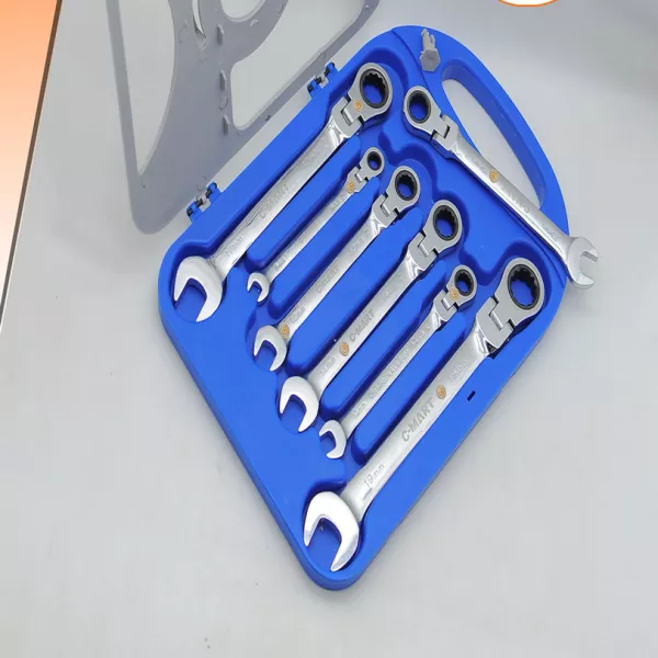 Tuy nhiên mỗi lần thao tác vặn lại phải nhấc lên để đặt lại vào ốc. Với cơ chế bánh cóc lắp thêm vào đầu vòng, ta có chiếc cờ lê vòng miệng tự động, không cần phải nhấc cờ lê lên mỗi lần vặn nữa. Bộ cờ lê vòng miệng tự động C-mart T0010 7 cây tập hợp đủ các số phổ biến hệ mét 8,10,12,13,14,17,19mm để đáp ứng công việc sửa chữa gia đình và xe máy xe đạp.
