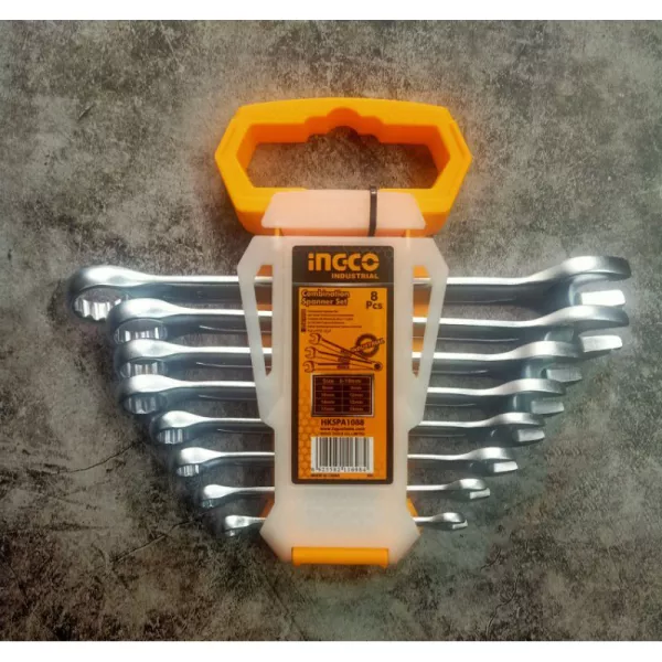Bộ cờ lê vòng miệng INGCO HKSPA1088 (gồm 8 cây, kích thước lần lượt là 6, 8, 10, 12, 14, 15, 17, 19mm) có tính ứng dụng cao trong cuộc sống hàng ngày giúp tăng độ hiệu quả khi làm việc. Bộ cờ lê này giúp bạn có thể sử dụng để vặn, siết đai ốc nhanh và hạn chế được vấn đề gây biến dạng đai ốc, đáp ứng tốt cho các nhu cầu sử dụng chuyên nghiệp, đai ốc cần lực siết/vặn mạnh.