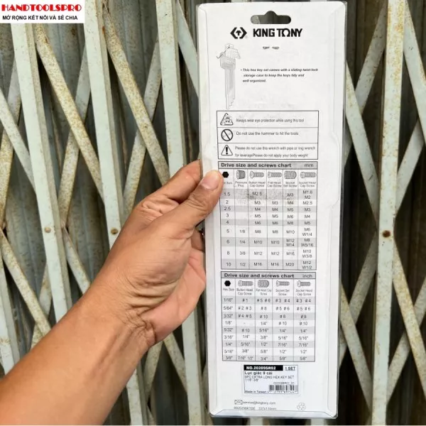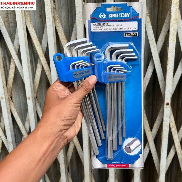 - Bộ lục giác 9 chi tiết KINGTONY có thể vặn các bu lông có kích thước từ 1/16 đến 3/8