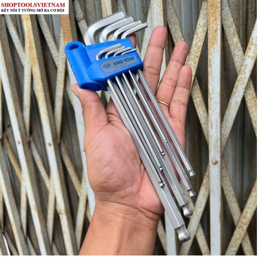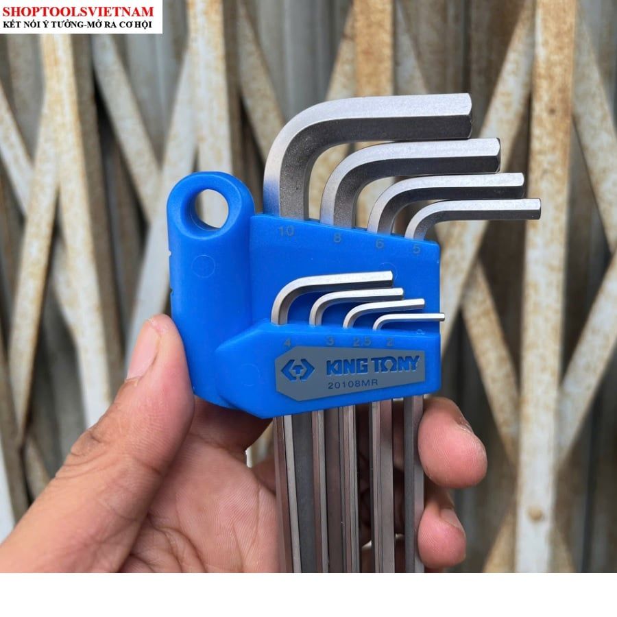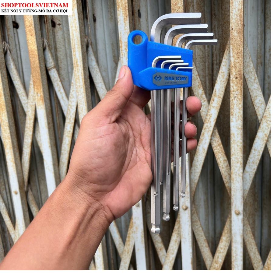 Bộ chìa lục giác đầu bi 8 cái hệ mét 2-10mm Kingtony 20108MR (Extra long ball point metric hex key set - 8 pcs)