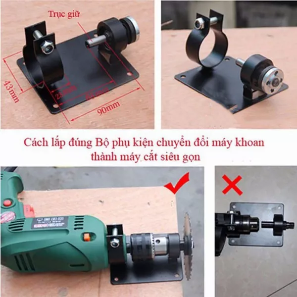 - Bộ đế chuyển máy khoan thành máy mài đa năng, với bộ sản phẩm này các bạn có thể biến máy khoan cầm tay của mình thành máy cắt, máy mài bàn mini dễ dàng.