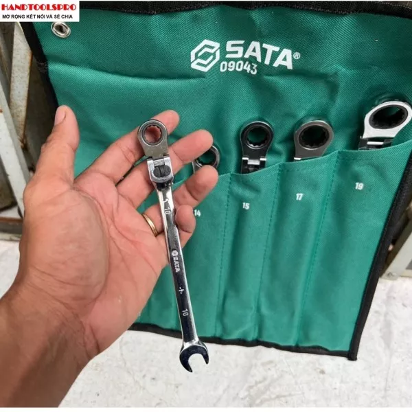 Bộ cờ lê lắc léo tự động có chốt khóa 10-19mm Sata 09043