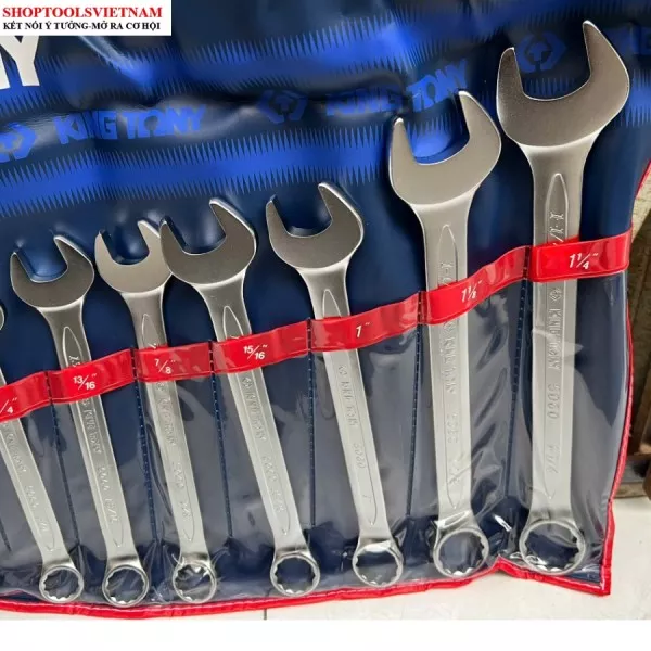 Bộ cờ lê vòng miệng hệ inch 14 cây 5/16 - 1-1/4 inch Kingtony 1214SR (14 PC. Combination Wrench Set)