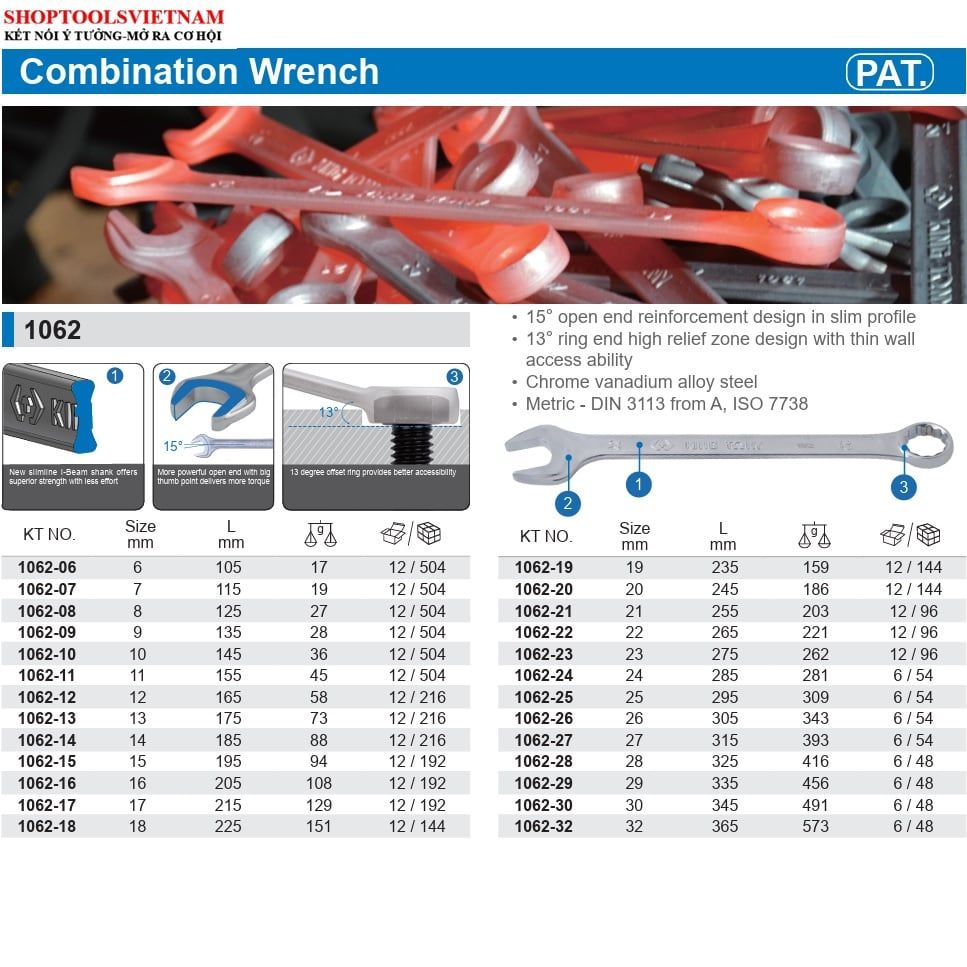 Bộ cờ lê vòng miệng siêu nhẹ cao cấp 10-32mm 15 món KINGTONY 12D15MRN