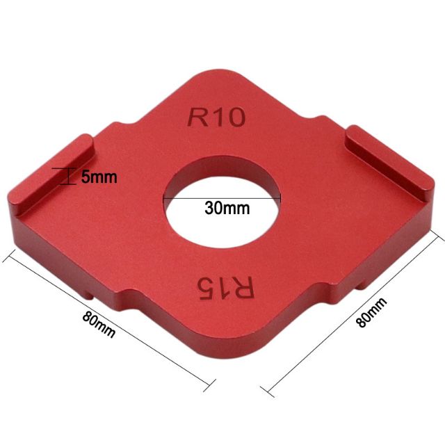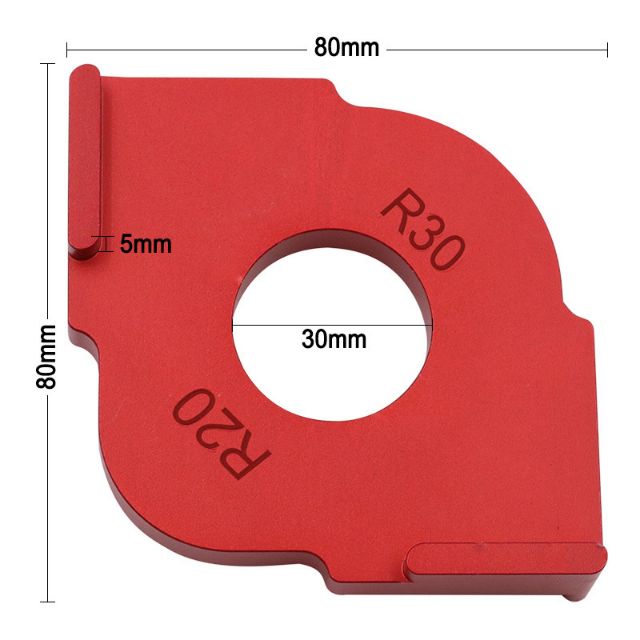 Bộ cữ máy phay giúp mũi phay gỗ bo cạnh góc tròn dùng làm cữ phay mép gỗ tròn, vê mép góc tròn cho các tấm gỗ. Cữ phay mép tròn cho tấm gỗ bao gồm các phần như sau gồm 2 tấm: 1 tấm cho góc có bán kính 10mm và 15mm, 1 tấm cho góc có bán kính 20mm và 30mm. Bộ cữ có chất liệu hợp kim nhôm 6061, được gia công phay cnc chính xác, chất lượng tinh xảo, bền đẹp, bề mặt sơn mạ tĩnh điện màu đỏ. Sản phẩm có độ bền cao, định vị chính xác, dễ dàng cài đặt và thuận tiện để sử dụng.