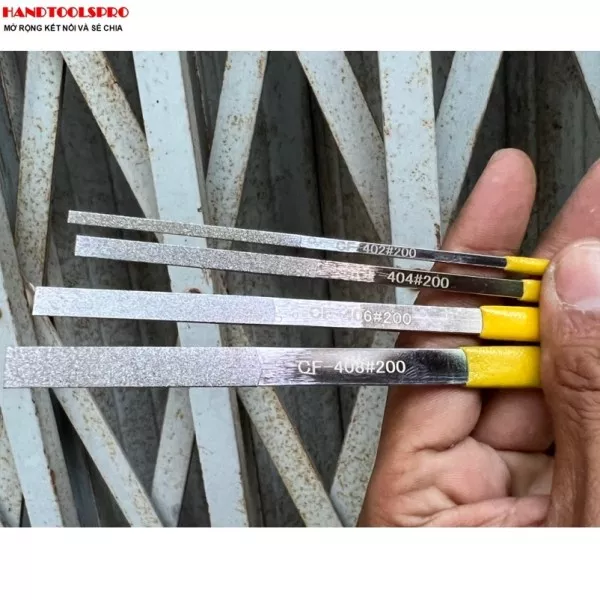 - Bộ dũa mài kim cương 12 chi tiết 3 màu H+P CF-400 với thiết kế có nhiều cỡ đầu khác nhau giúp bạn dễ dàng lựa chọn mục đích điêu khắc tùy theo chất liệu