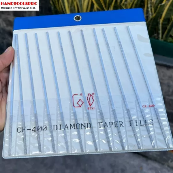 - Bộ dũa mài kim cương 12 chi tiết bảng BEST CF-400 với thiết kế có nhiều cỡ đầu khác nhau giúp bạn dễ dàng lựa chọn mục đích điêu khắc tùy theo chất liệu