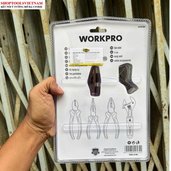 WORKPRO là thương hiệu được phát triển bởi GreatStar, chuyên sản xuất dòng sản phẩm phục vụ trong ngành thiết bị dân dụng, công nghiệp chuyên nghiệp tại Thượng Hải (Trung Quốc). Đa dạng về mẫu mã, thiết kế hiện đại, giá thành hợp lý. Các loại kìm, cờ lê mỏ lết, ê tô kẹp, bộ đầu tuýp, tuốc nơ vít, kéo, cưa cầm tay, tủ đựng đồ nghề nhiều ngăn... của Workpro đã được phân phối rộng rãi toàn quốc.