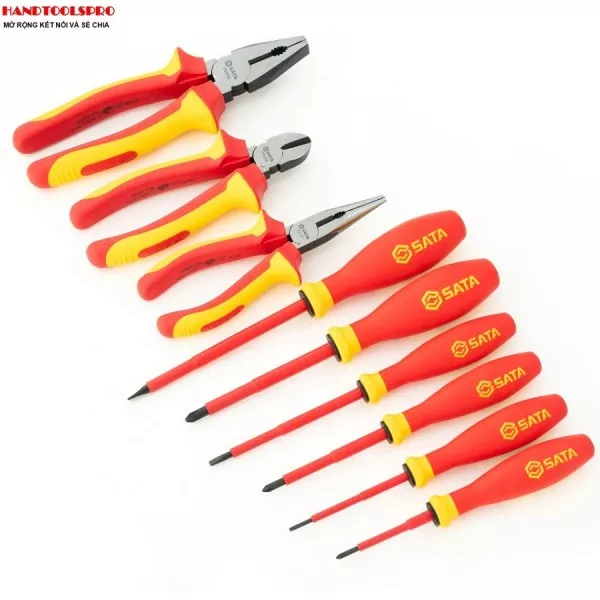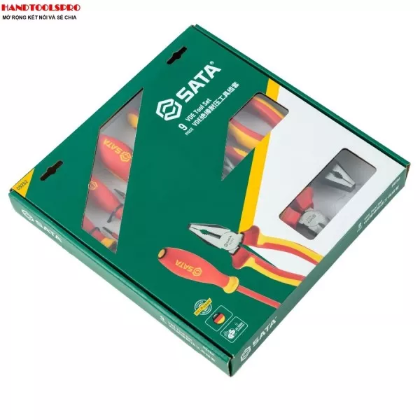 – Bộ dụng cụ cách điện 1000V 9 chi tiết SATA 09262 đạt tiêu chuẩn chất lượng có thể sử dụng trong khu vực có điện áp 1000V, phù hợp với những thợ điện làm việc ở những nơi có điện áp cao.