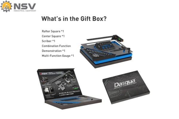 Bộ dụng cụ lấy dấu và đo chính xác cao cấp DASQUA là một giải pháp toàn diện cho mọi nhu cầu đo đạc và định vị trong quá trình chế tạo. Bộ sản phẩm gồm các dụng cụ đo chuyên nghiệp: thước vuông góc Rafter Square, thước tâm Center Square, bút lấy dấu Scriber, thước đa năng Gauge và mô hình minh họa chức năng.