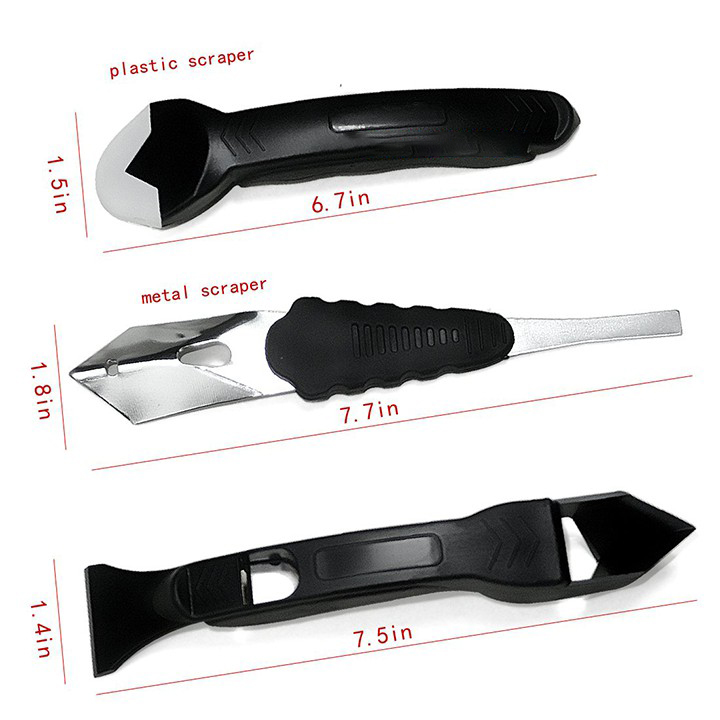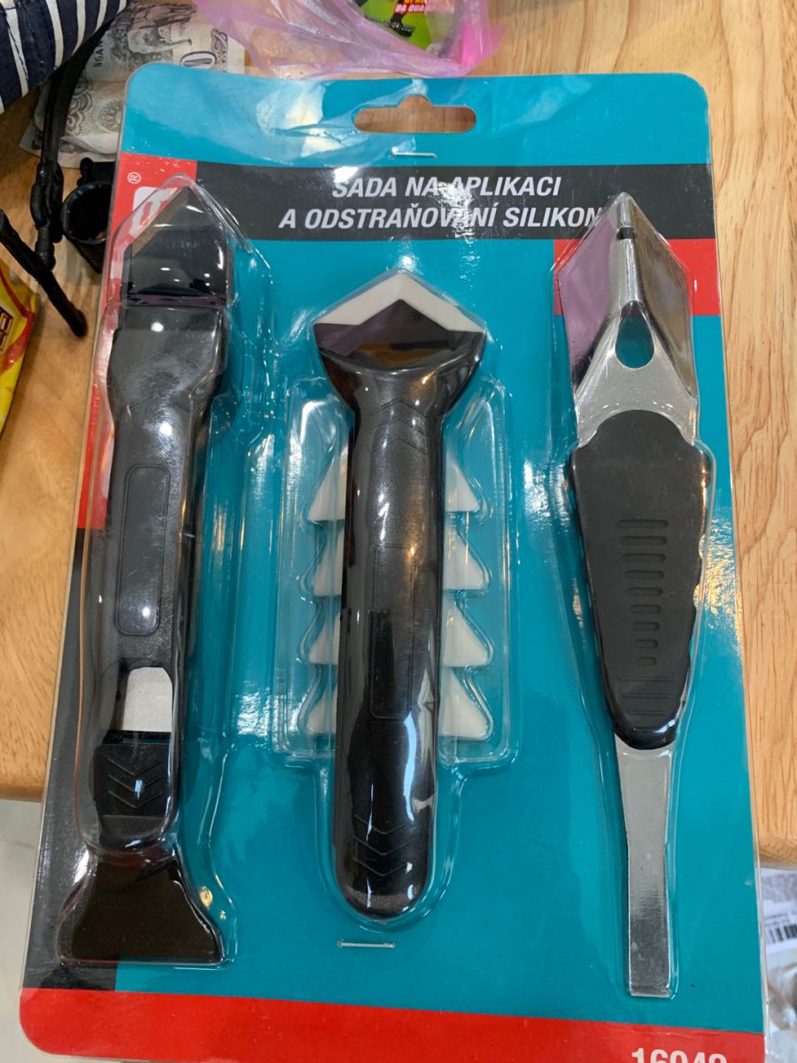 - Làm sạch keo silicon cũ với 3 lưỡi làm mạch : 1 lưỡi phẳng làm sạch silicone trên mặt phẳng, 2 lưỡi dạng vuông góc làm sạch tại khe mạch cạnh tường.