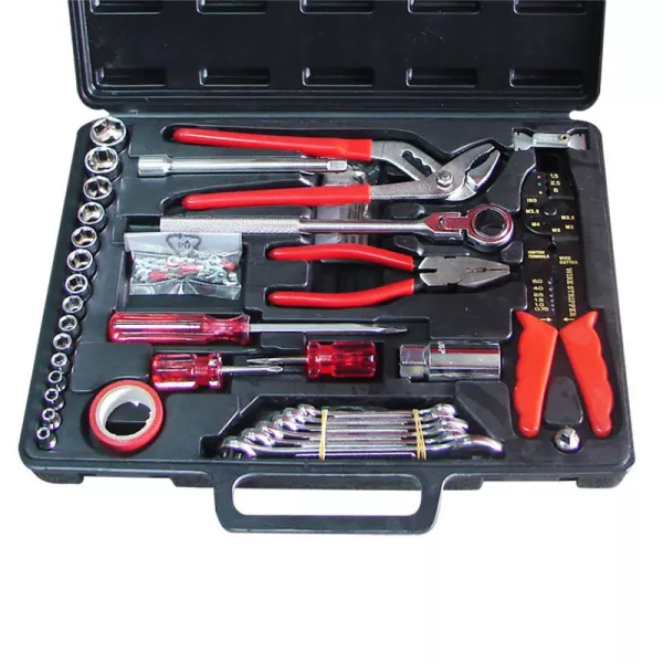 Bộ dụng cụ điện nước dùng trong gia đình với 69 chi tiết phổ biến đáp ứng các công việc liên quan đến sữa chữa điện nước dân dụng như kìm điện, kìm nước, kìm tuốt dây, tuốc nơ vít, đầu tuýp ... được bố trí sắp xếp gọn gàng trong một vali 38 x32 x 7 cm rất tiện lợi.