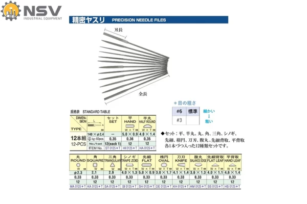 Bộ giũa kim loại dẹt HI01256T (#6) (12 cái/bộ) TSUBOSAN - Nhật Bản