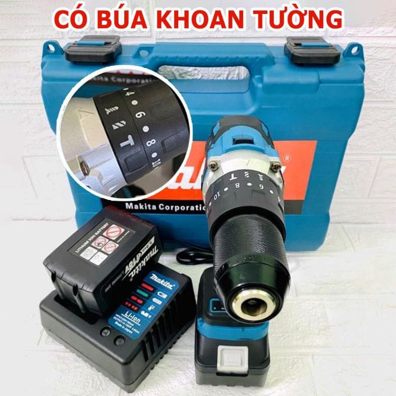 Bộ khoan pin bắt vít Makita 118V không chổi than tặng kèm phụ kiện 30 món.