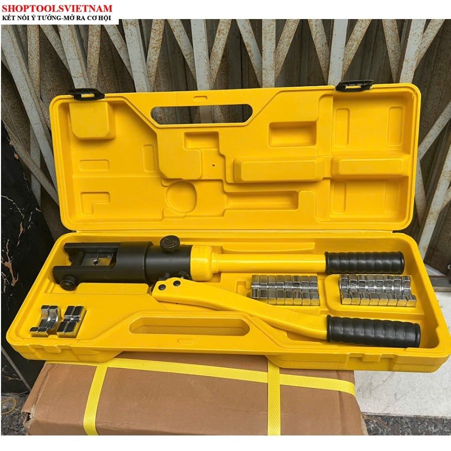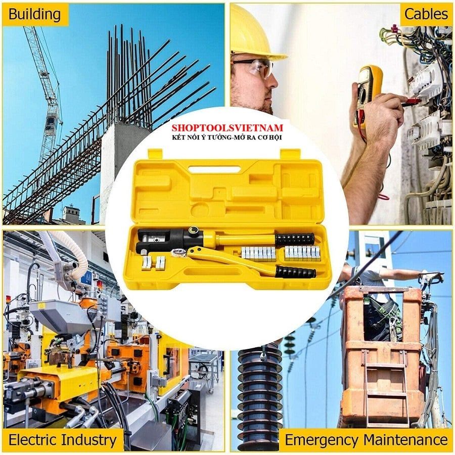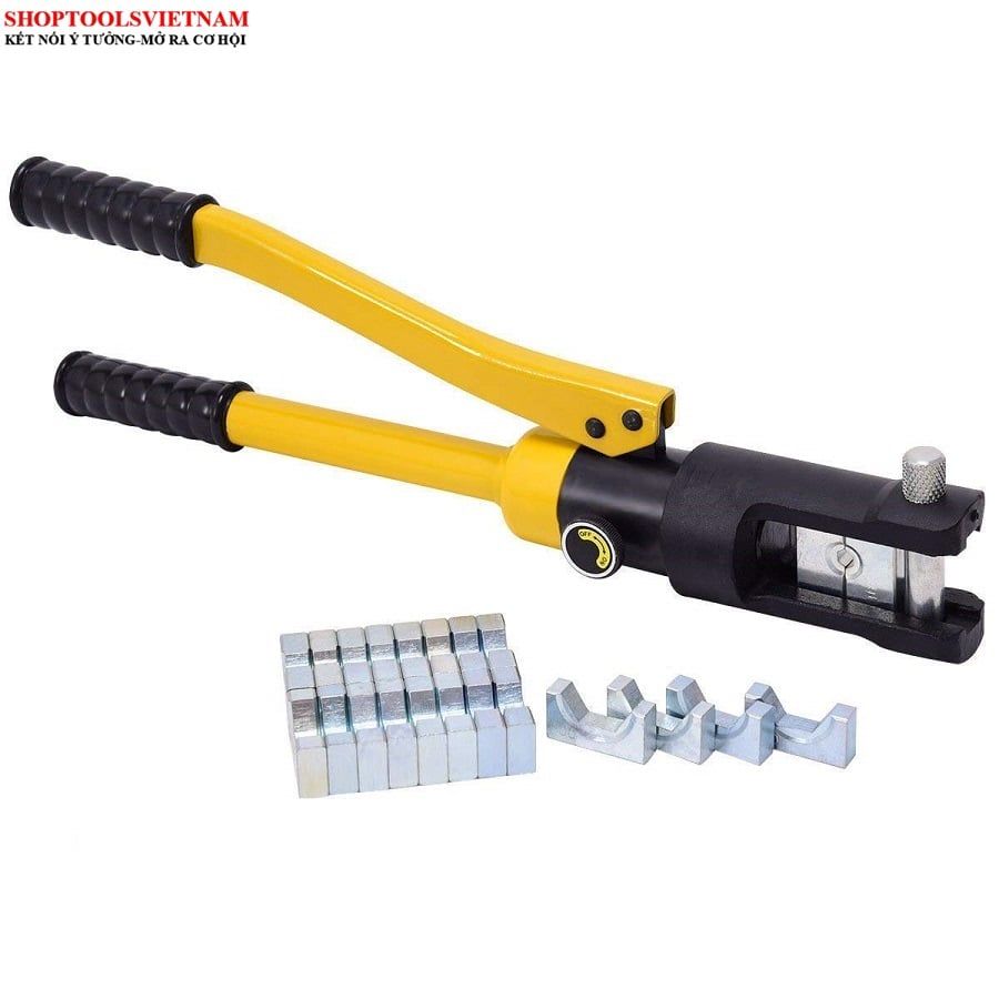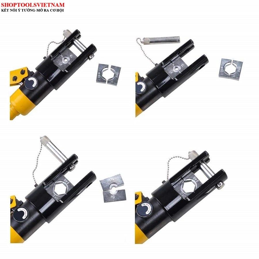 Bộ sản phẩm được tích hợp kèm theo 11 bộ đầu ép cose hình lục giác: 16, 25, 35, 50, 70, 95, 120, 150, 185, 240, 300 mm2, mỗi bộ đều có sẵn kích thước để người dùng dễ dàng tìm kiếm hơn khi thao tác.
