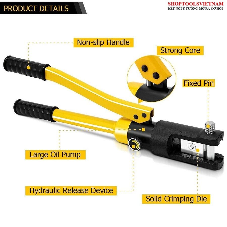 Sản phẩm được thiết kế gọn, nhẹ, ống dầu nằm bên trong thân kìm, cho người dùng thao tác dễ dàng hơn và có thể mang đến bất cứ công trình nào để thi công