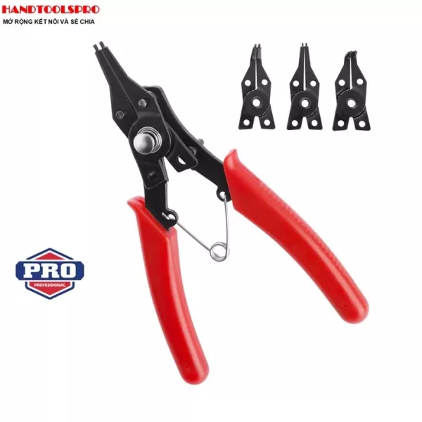 Bộ Kìm Mở Phe Đa Năng 4 Đầu WP201004 WORKPRO - Xuất xứ: Trung Quốc - Thiết kế: Đa năng, nhỏ gọn tiện dụng - Chất liệu: Thép CR-V - Quy cách: Dài 6" (150mm) Nếu bạn là 1 thợ máy hay sửa chữa , tháo ráp máy móc, chắc chắn sẽ không thấy lạ lẫm với công cụ kìm mở phe. Nhưng nếu chẳng may bạn gặp phải chi tiết phe cần mở là phe ngoài mà bạn chỉ có cây kìm mở phe trong, thì không thể nào mở được cái phe đó. Nay chúng tôi xin giới thiệu với bạn 1 bộ dụng cụ, đó là BỘ KÌM MỞ PHE ĐA NĂNG 4 ĐẦU – WORKPRO . Bộ kìm mở phe này được chế tạo bằng thép tốt: -Chiều dài tối đa: 6” ( 150mm) -Mũi kìm có loại cong 450 hoặc 900 -Mở được các loại phe trong và phe ngoài. Bạn có thể thay thế mũi kìm 1 cách dễ dàng. Trên mỗi đầu kìm đều có 2 lỗ trên và 2 lỗ dưới. Bạn có thể thay đổi chức năng mở phe ngoài hoặc trong trên cùng 1 đầu kìm 1 cách dễ dàng.Similar products
