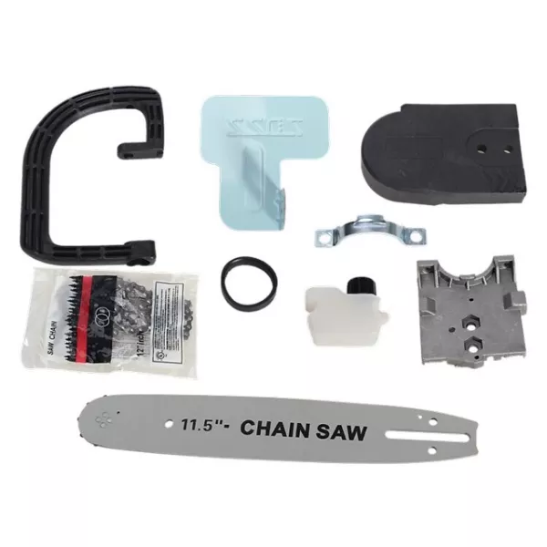 Bộ dụng cụ cưa xích này sẽ giúp bạn giải quyết được vấn đề này, bộ dụng cụ này gồm 1 lưỡi cưa xích và một số phụ kiện để biến chiếc máy mài góc thành máy cưa xích.