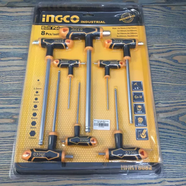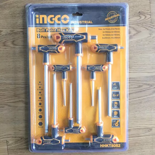 Bộ lục giác tay cầm chữ T đầu bi thép Cr-V iNGCO HHKT8082