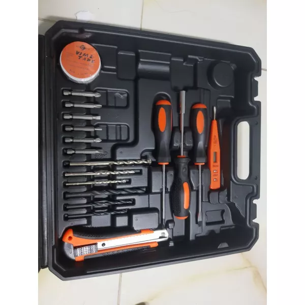 - Với thiết kế hộp đựng hình vuông, để vừa máy khoan, phụ kiện và các phụ kiện hỗ trợ công việc khác như kèm, búa, dao dọc giấy...