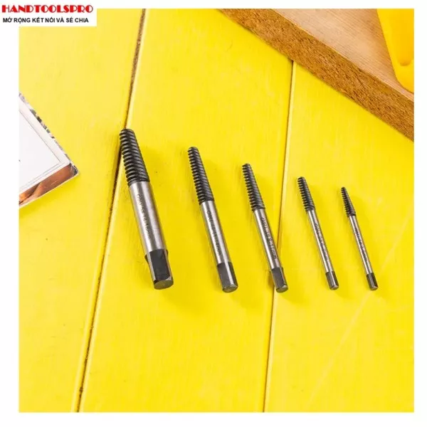 Sản phẩm gồm có 6 mũi để mở bu lông gẫy từ 3mm đến 25mm