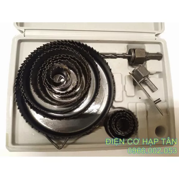 - Bộ mũi khoét thạch cao và gỗ mềm 16 chi tiết có kích cỡ 13 mũi đã dạng: Ø19, Ø22, Ø25, Ø29, Ø32, Ø38, Ø44, Ø51, Ø64, Ø76, Ø89, Ø102, Ø127 (mm)