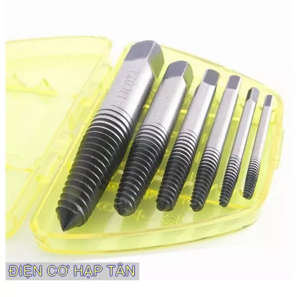 - Bộ mũi tháo bu lông ốc vít gãy 5 cây LICOTA được chế tạo bằng thép tốt . Sản phẩm gồm 5 cỡ mũi 1/8-1/4 1/4-5/16 5/16-7/16 7/16-9/16 9/16-3/4