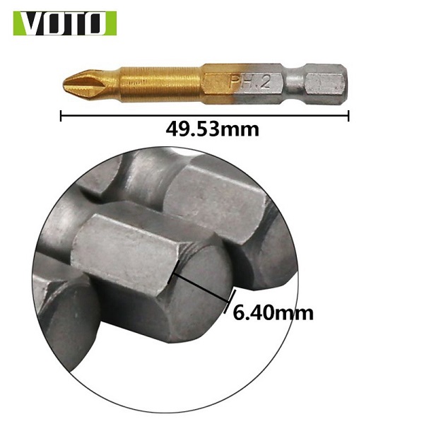 Bộ Mũi Vít PH2 Thép S2 Mạ Titanium Chống Trượt Chuyên Dụng VOTO