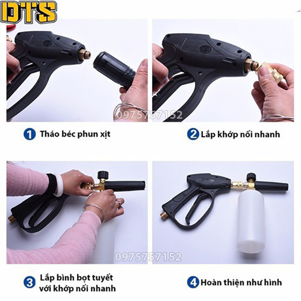 Giới thiệu Bộ súng xịt rửa và bình tạo bọt tuyết cao cấp cho máy rửa xe áp lực cao, máy xịt rửa cao áp
