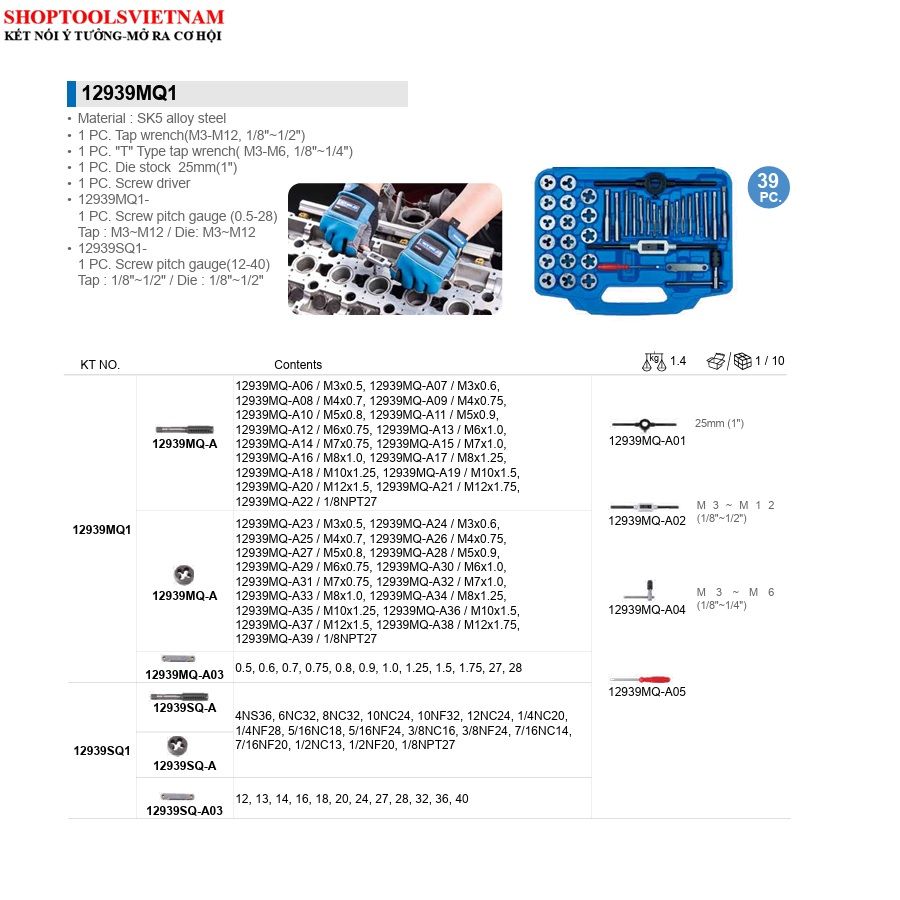 Bộ Taro ren hệ mét 39 món KINGTONY 12939MQ1 (Tap and die set - 39 PC.)