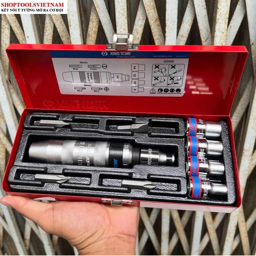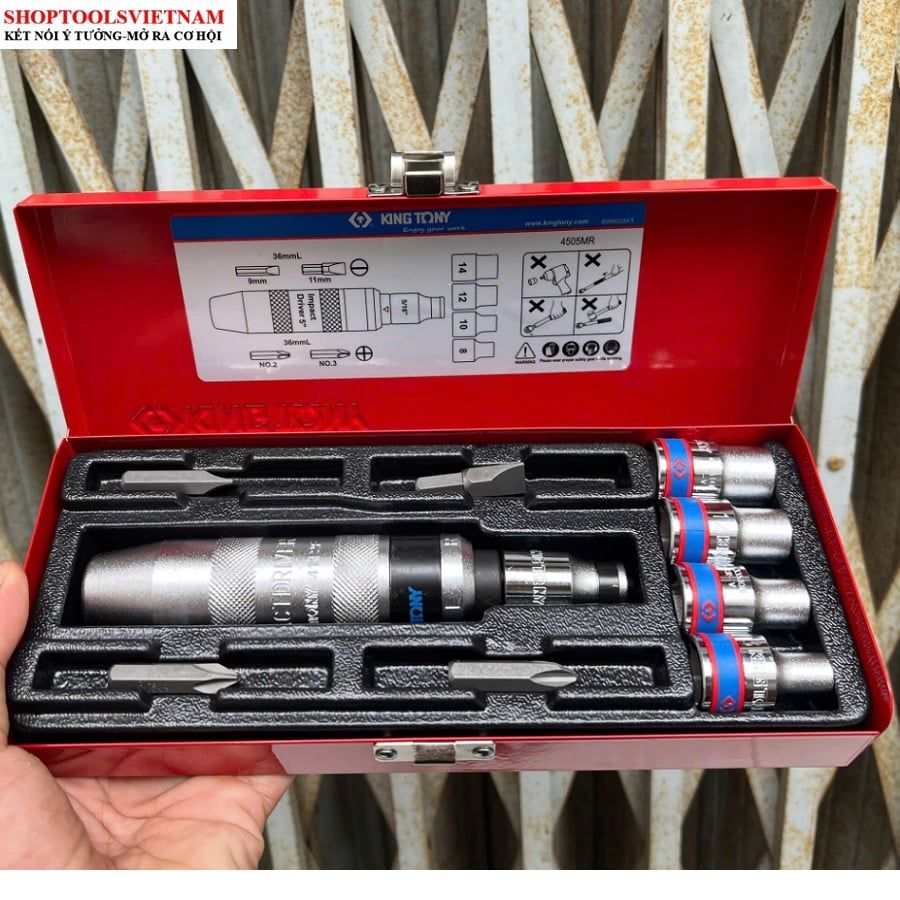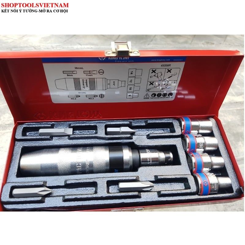Bộ tô vít đóng 10 cái hệ mét Kingtony 4505MR (10 PC. 1/2" DR. Impact Driver & Socket Set)