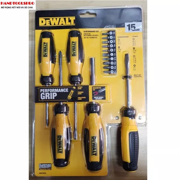 Thông tin về bộ tua vít 15 món DeWalt DWHT65202 *1 tay cầm tuốc nơ vít PH1 x 7mmm *1 tay cầm tuốc nơ vít PH2 x 100mm *1 tuốc nơ vít dẹt 3/16 inch x 4 inch *1 tuốc nơ vít dẹt 1/4 inch x 4 inch *1 tua vít ngắn *1 tuốc nơ vít Phillips PH1 *1 tuốc nơ vít Phillips PH2 *1 tuốc nơ vít Phillips PH3 *1 tuốc nơ vít dẹt 3/16 inch *1 mũi tuốc nơ vít dẹt 1/4 inch *1 đầu torx T10 *1 đầu torx T20 *1 đầu torx T25 *1 hoa vuông số 1 *1 hoa vuông số 2Similar products