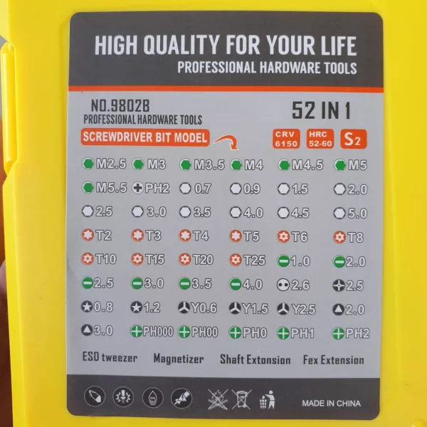 Bộ tua vít bỏ túi đa năng sửa điện thoại, Có nam châm, bộ tua vít đa năng 52in1 hộp nhưa cao cấp chữ y sao T