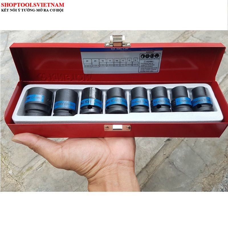 Bộ tuýp 1/2 inch 8 chi tiết 10-24mm Kingtony 4408MP (8 PC. 1/2" DR. 6 Point Impact Socket Set)